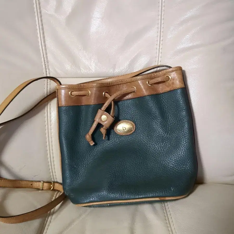 다크 그린 가죽 복조리형 숄더백