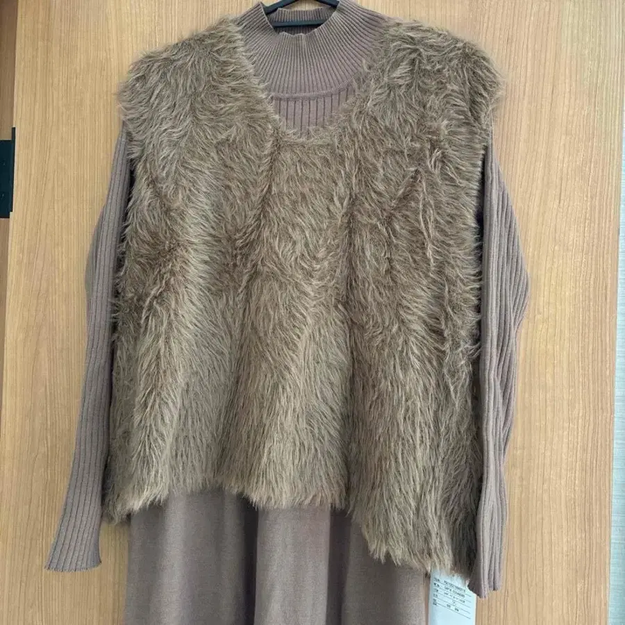 퍼 베스트 포함 브라운 롱 원피스