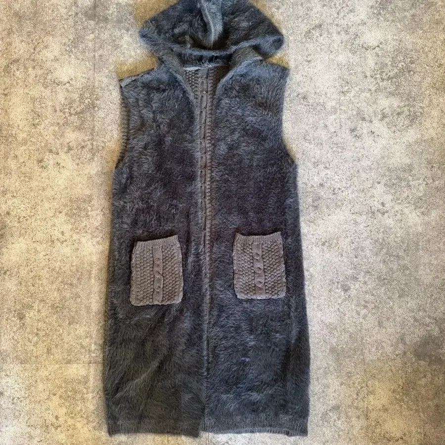 블루 그레이 후드 부착 퍼 베스트 복슬복슬 베스트