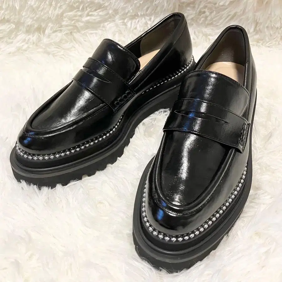 [ 새상품급 ] EVOL 스터드 코바 트랙 밑창 로퍼 통굽 블랙 22cm