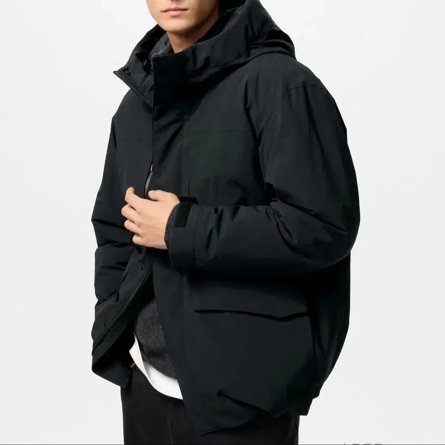 유니클로 L 사이즈 하이브리드 다운 후드티 BLACK