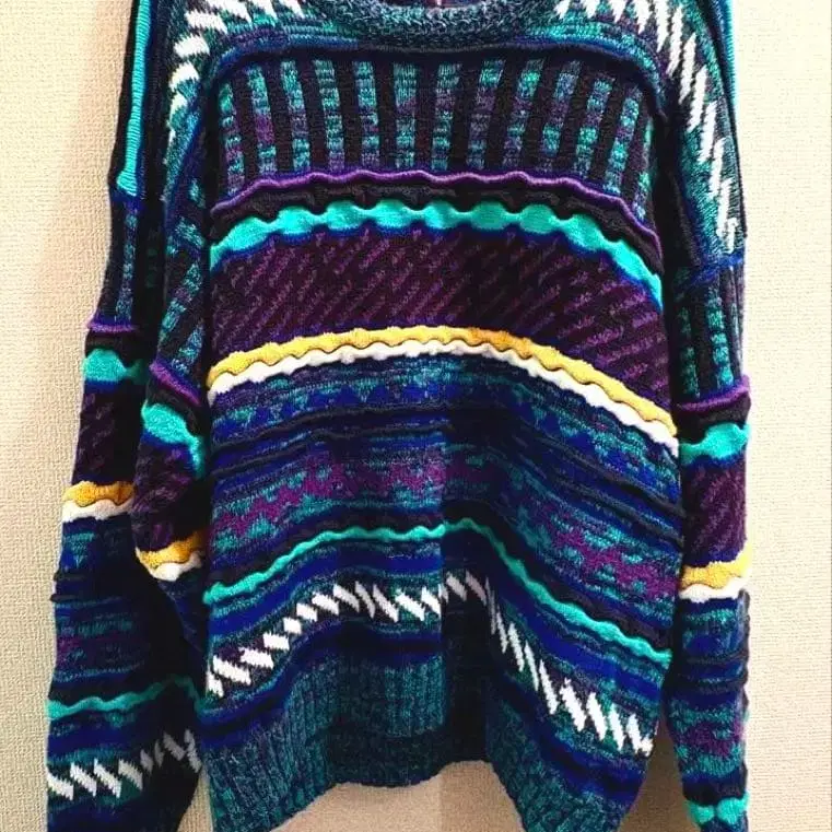 올 패턴 3D 니트 쿠지풍 파랑/보라색/그린 계열