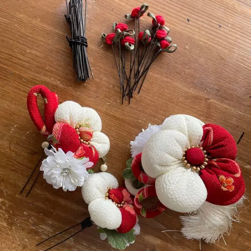 츠마미자이쿠 머리 장식 홍백 세트 U핀 시치고산 성인식 졸업식
