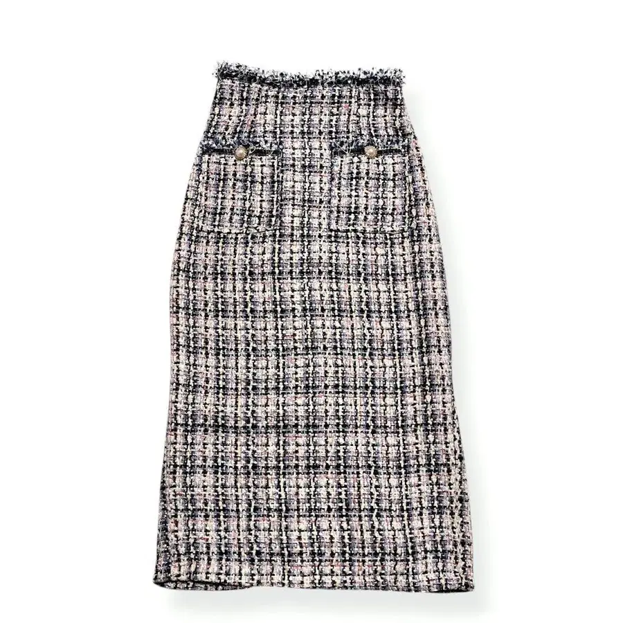 트위드 타이트 스커트 롱 기장 S 허리밴딩 가을/겨울 슬릿 안감 있음