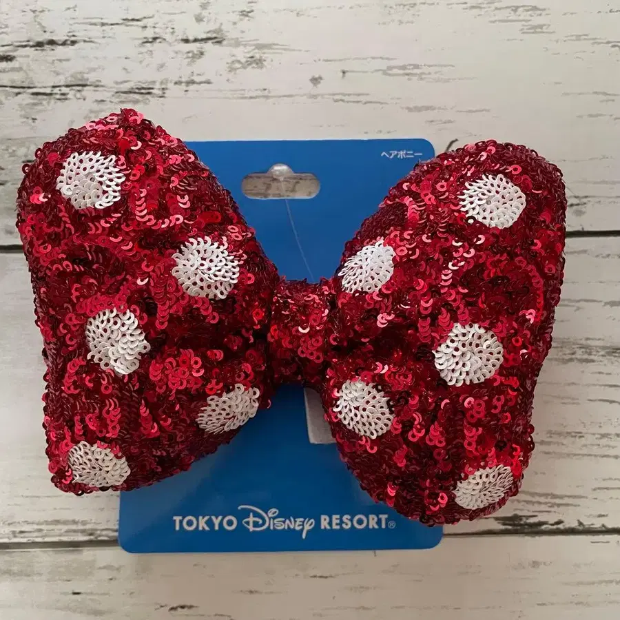 디즈니 미니 리본 머리끈 도트 무늬 리본 반짝반짝 빨간색