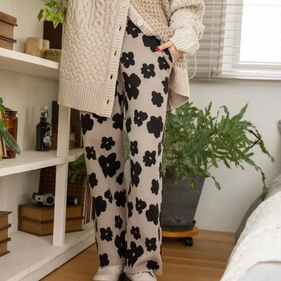 꾸민 듯 안 꾸민 듯 편안한 분위기를 연출할 수 있는 니트 팬츠에는 루즈한 오버 사이즈 상의가 잘 어울립니다!