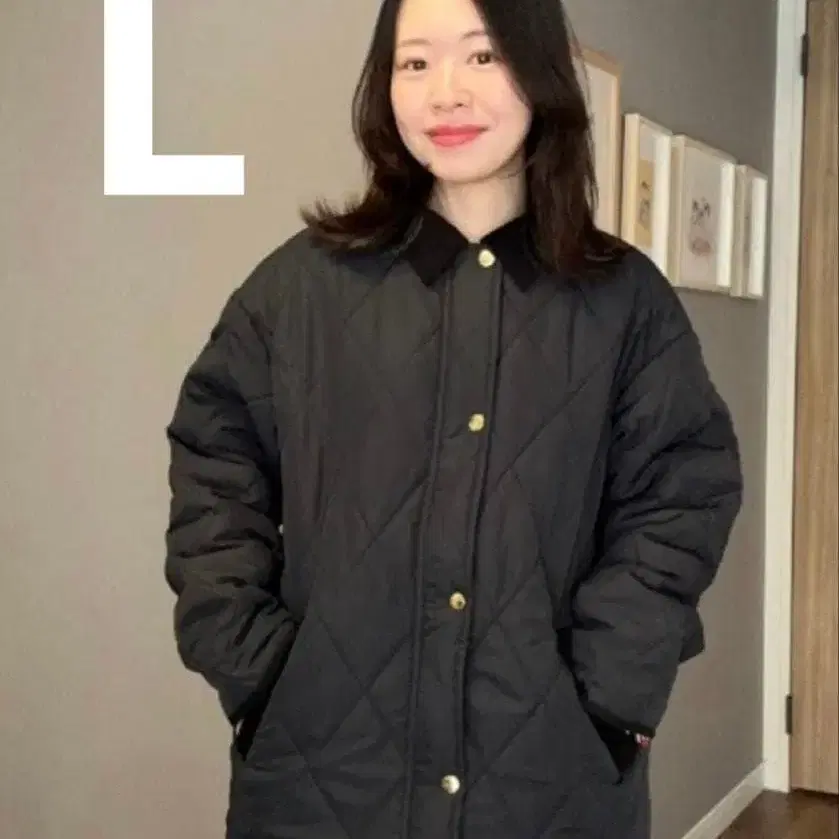 [ 시마무라 ammy ] 코듀로이 옷깃 퀼트 코트 블랙 엘르