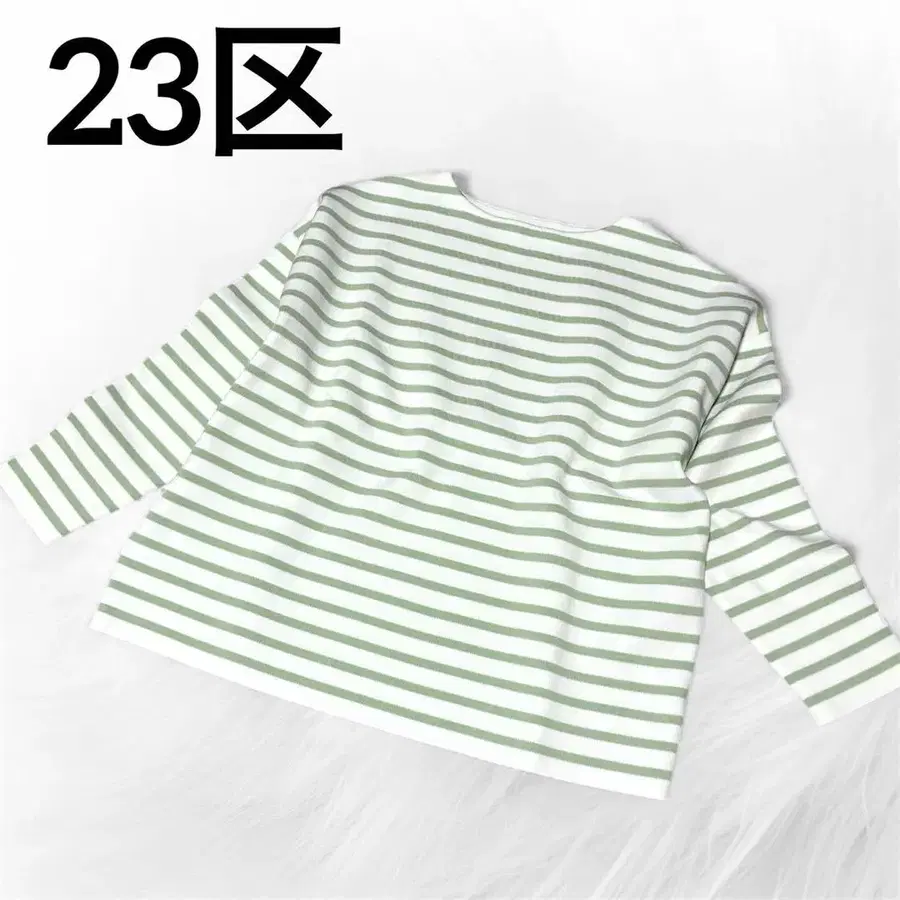 연한 색상으로 부드러운 인상의 보더 니트입니다.