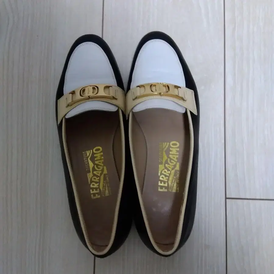 FERRAGAMO 가죽 로퍼 화이트/블랙