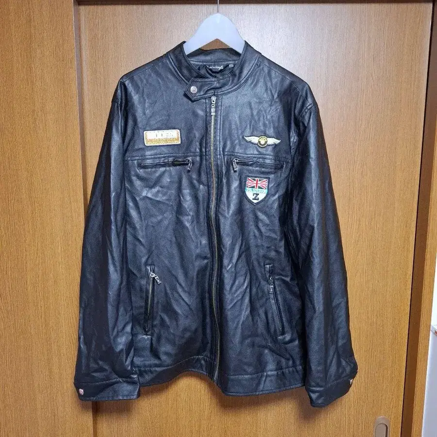 페이크 레더 자켓 블랙 와펜 부착 L~LL 사이즈 상당 포켓 부착