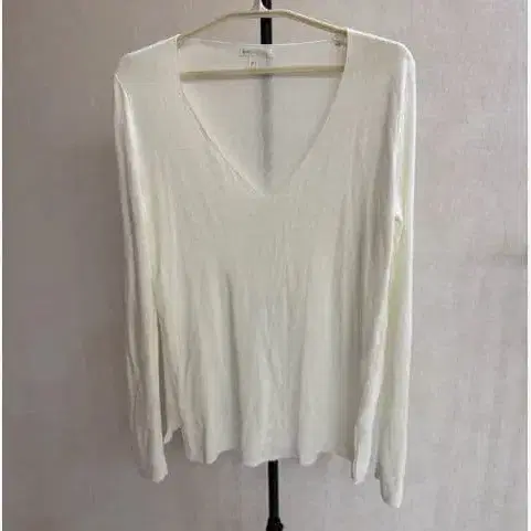 화이트 V넥 긴팔 상의