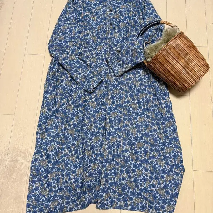 NARU 긴팔 꽃무늬 코듀로이 롱 원피스 루즈핏