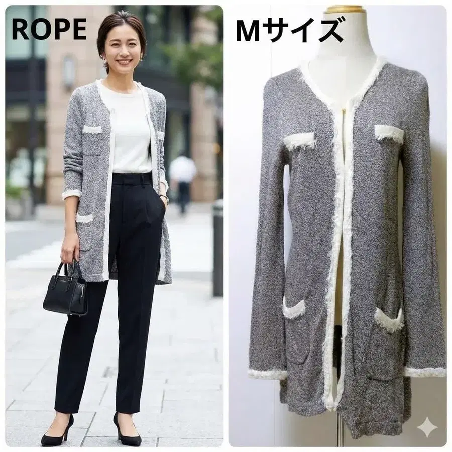 [ 고품질 ] ROPE 로페 마 혼방 트위드 니트 롱 가디건 프린지 M
