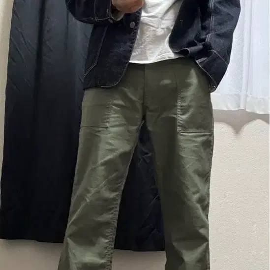 자동 번역되었어요. 원문보기코지마 진즈의 베이커 팬츠입니다. 새상품 구매 후 5~6회 착용 후 보관했습니다. 색상은 카키색으로 흔한 밀리터리 그린입니다. 실루엣은 상당히 와이드한 스트레이트입니다. 허리 사이즈 표기는 34이지만, 다른 브랜드에 비해 약간 슬림하므로 아래 실측치수를 참고해주세요. 밑단 수선 완료. 약간의 사용감 외에 특별한 데미지나 얼룩 없이 아직 착용 가능하다고 생각합니다.
