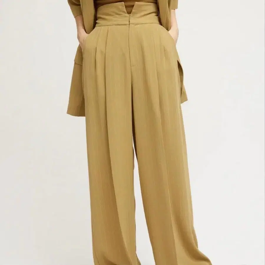 ameri 턴 백 웨이스트 와이드 팬츠 베이지