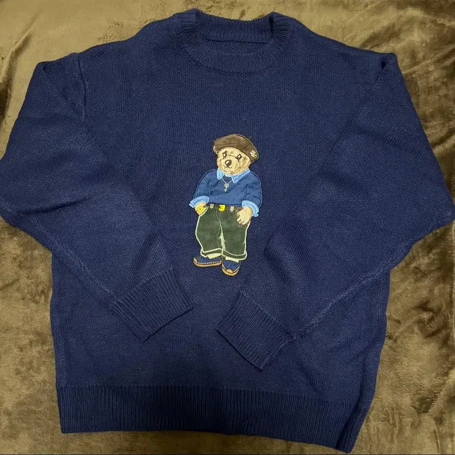 곰 자수 네이비 니트 스웨터 S 사이즈