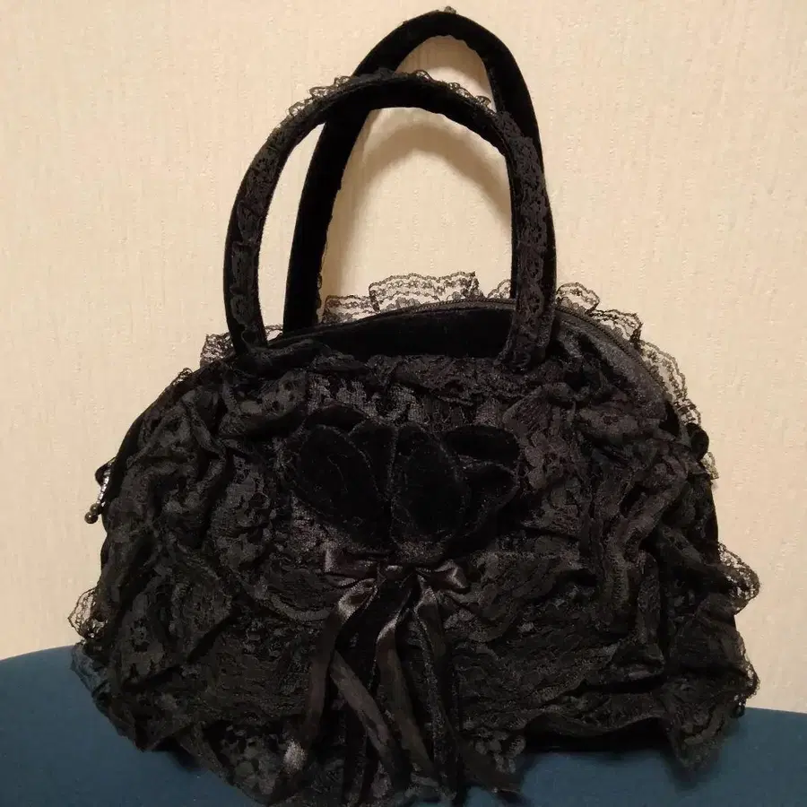 꽃무늬 레이스 미니 보스턴 백 레이스 & 벨로아 소재 히메 스타일 블랙