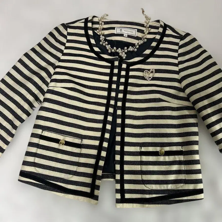 페피크닉 노카라 자켓 네이비 스트라이프 36 깔끔한