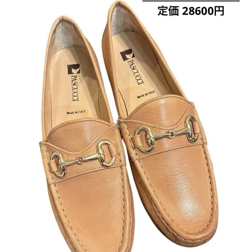 새상품 PASCUCCI 카멜 천연 가죽 비트 로퍼 24.5cm