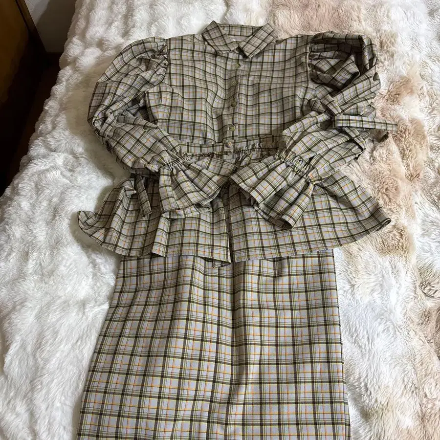 Honey mi honey 체크 무늬 퍼프 슬리브 셋업