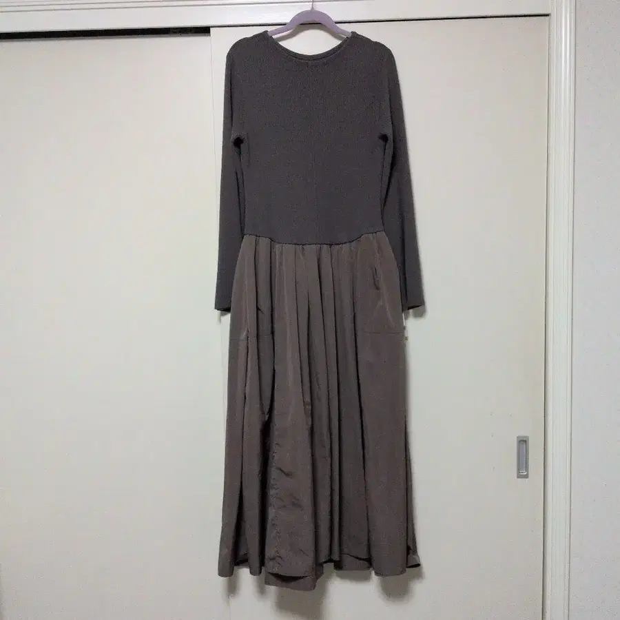 emmi BROWN 계 긴팔 롱 원피스 포켓 부착