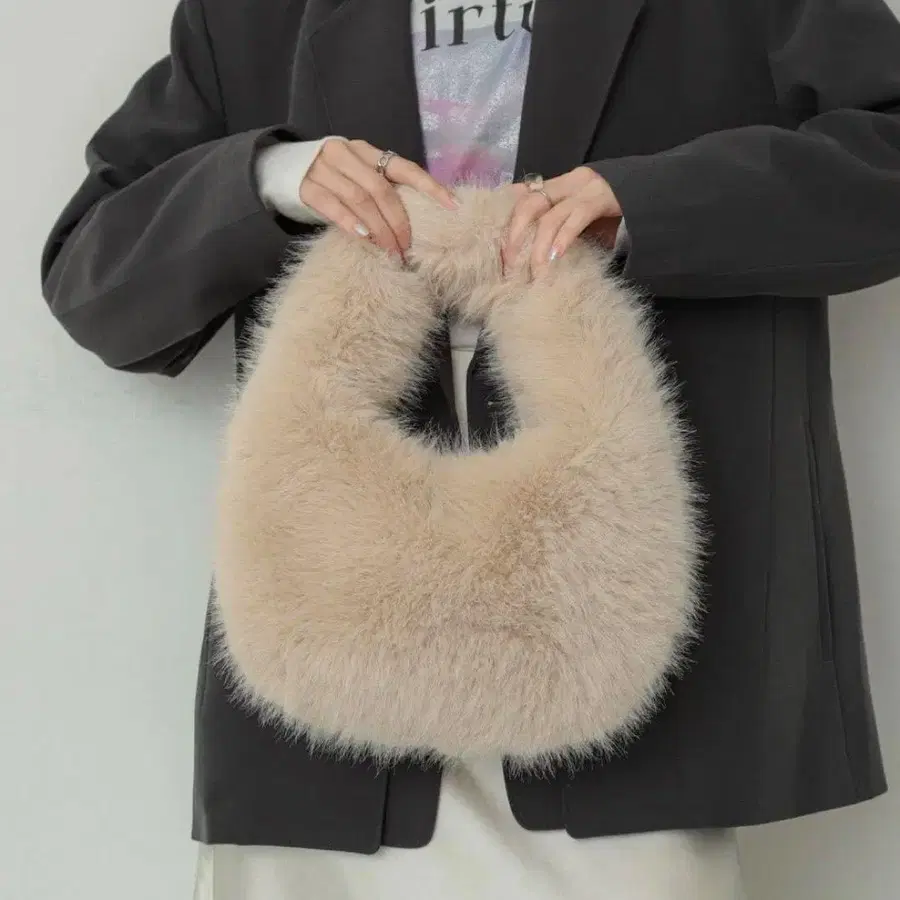[ 미사용 새상품 ] SENSE OF PLACE 퍼 라운드 백 베이지