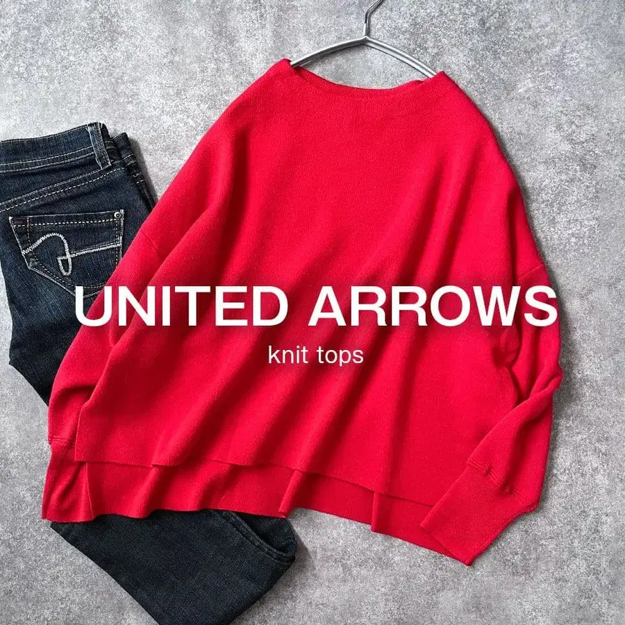 유나이티드 애로우즈 울 니트 스웨터 하이 게이지 빨간색 루즈핏 얇은 소재