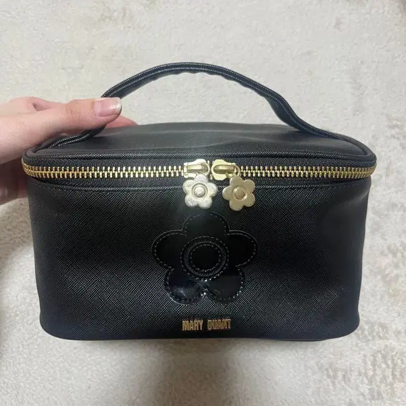 MARY QUANT 블랙 플라워 장식 파우치