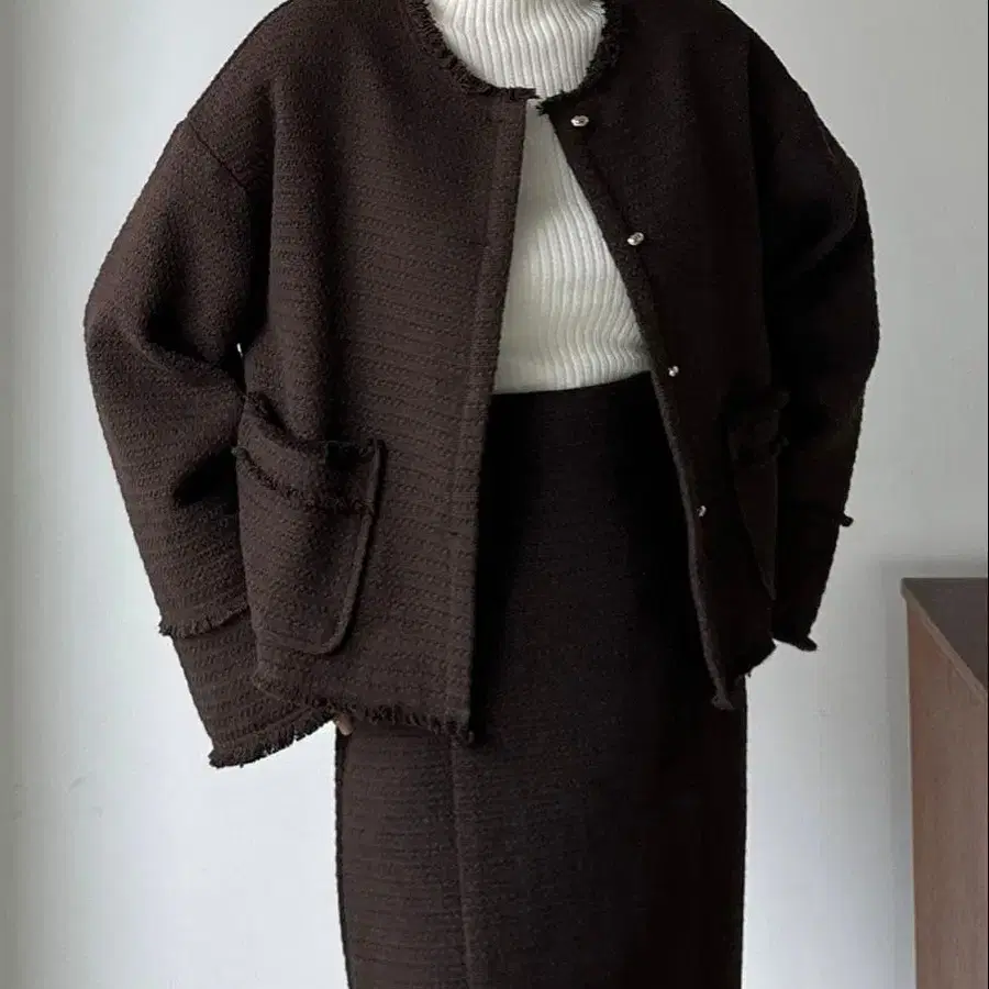 시즌 무드를 높이는 시크한 질감의 트위드 소재.