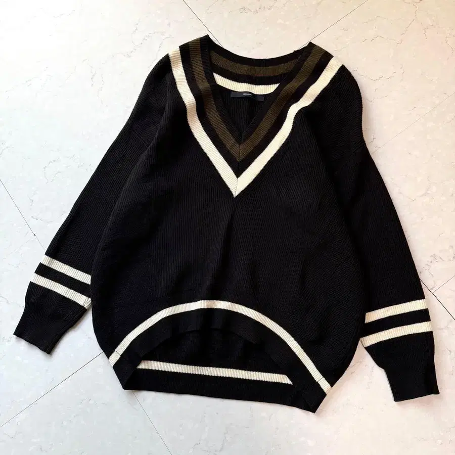 새상품급 FRAMeWORK 로게이지 벌키아제 V넥 니트 아이보리