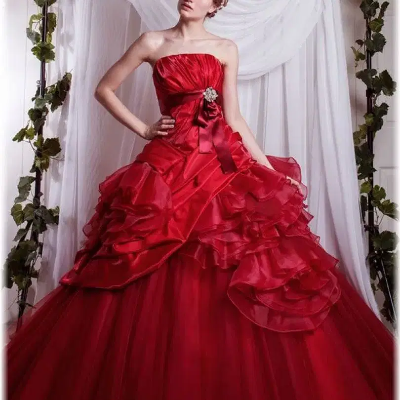 화려한 레드 스트랩리스 드레스, 비즈 장식과 리본이 특징. - 색상: 레드 - 디자인: 스트랩리스, 비즈 장식, 리본 포함 - 트레인: 긴 트레인 - 소재: 새틴, 튤 - 스타일: 풀 스커트 색상 - 레드 계열 실루엣 - A라인/프린세스 라인 데콜테/넥 - 뷔스티에 얼룩, 찢김, 냄새 등 - 없음 □ 드레스만 판매합니다. 파니에를 사용하시면 더욱 볼륨감 있는 프린세스 라인이 됩니다 ✨ □ 토르소 마네킹의 높이는 약 165cm~170cm 정도로 설정되어 있습니다. □ 브라이덜 살롱에서 렌탈 사용했지만, 관리된 상품입니다. □ 참고 렌탈 가격대는 30만 엔~40만 엔대의 드레스입니다. ⚠️ 눈에 띄는 얼룩이나 데미지 없이 착용 가능하지만, 원단 양이 많아 놓치는 부분이 있을 수 있습니다. ⚠️ 예민하신 분이나 새상품급 품질을 원하시는 분은 삼가해 주시기 바랍니다.