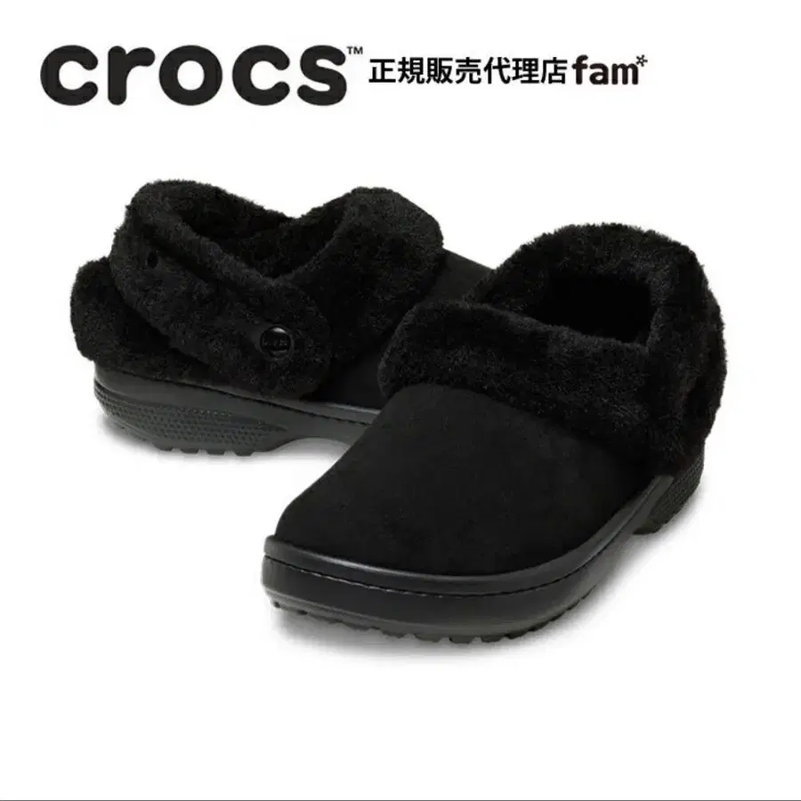 crocs 블랙 퍼(fur) 포함 클로그 샌들