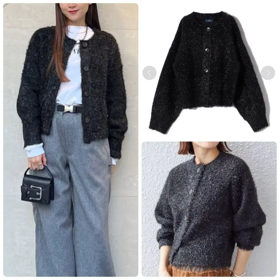 〈손세탁 가능〉글리터 라메 크루넥 가디건
