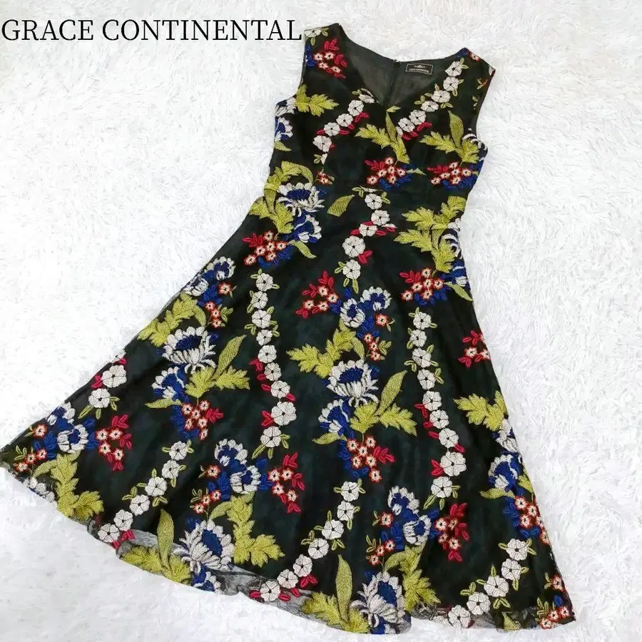 그레이스 콘티넨탈 롱 원피스 꽃무늬 자수 레이스 보타니컬 올 패턴