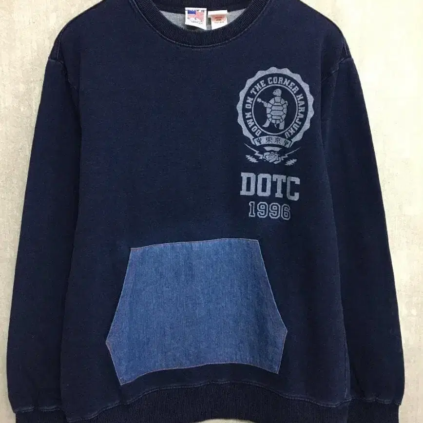 다운 온 더 코너 새상품급 칼리지 프린트 인디고 염색 맨투맨
