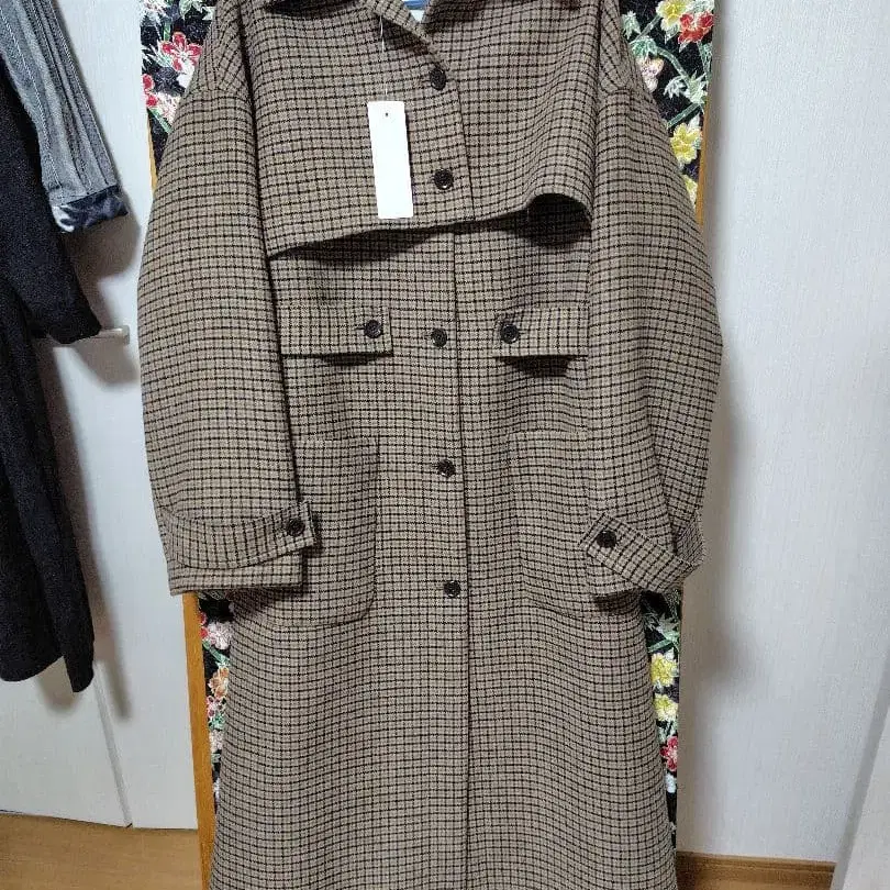 GU 2피스 체크 무늬 롱 코트 M 사이즈