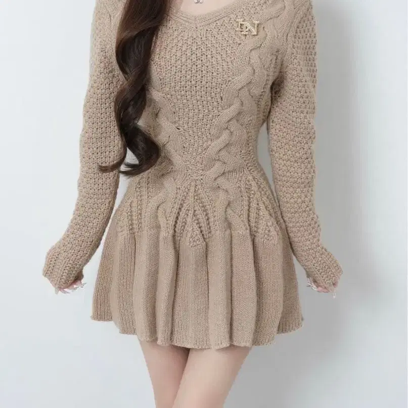 Lumignon Cable knit ribbon flare dress