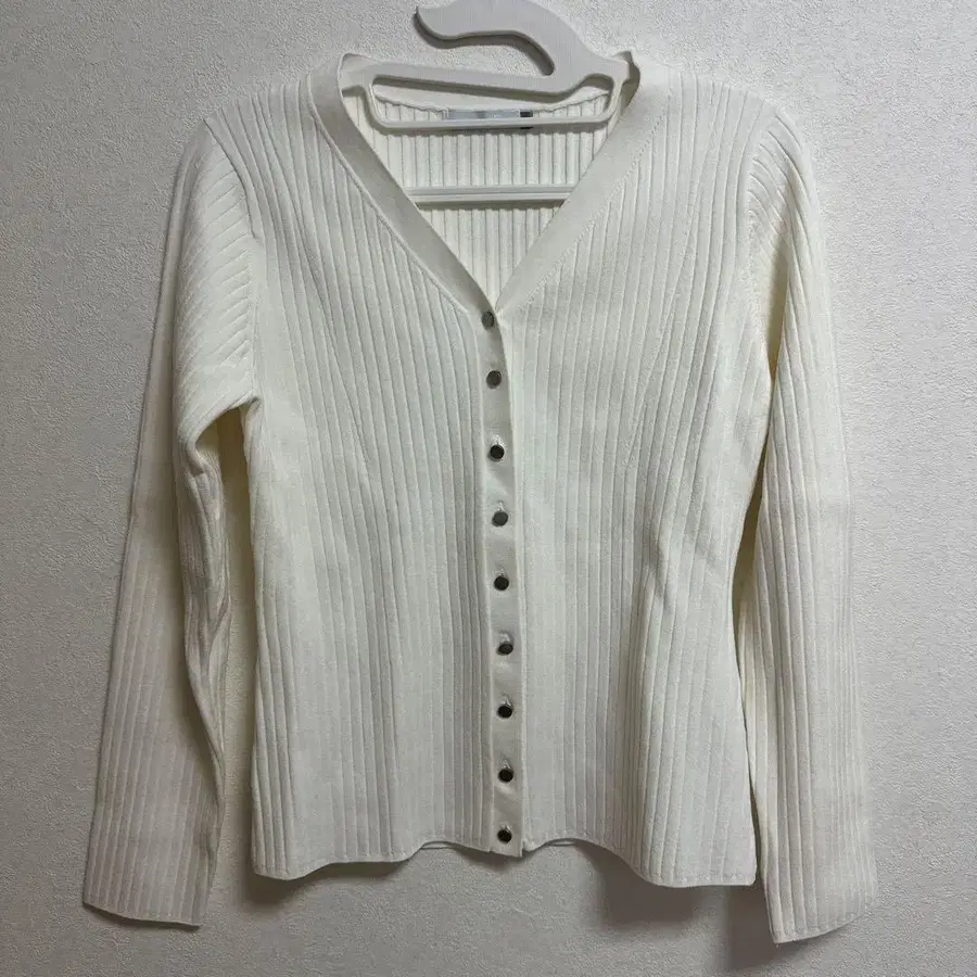 [미사용 새상품] overE 와이드 리브 니트 가디건: 화이트 96