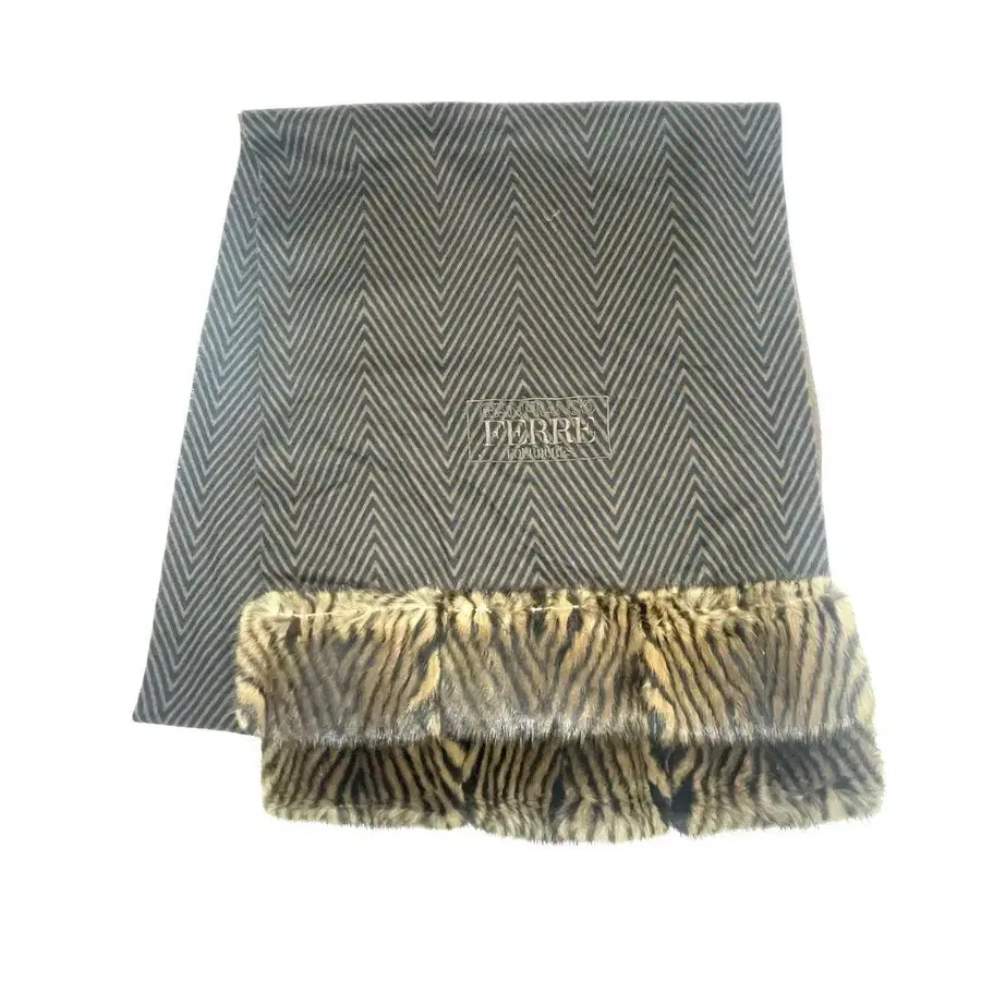 자동 번역되었어요. 원문보기[ 상품명 ] Y512-312 GIANFRANCO FERRE 장프랑코 페레 캐시미어 100% 머플러 퍼 포함 브라운 헤링본 퍼 절개