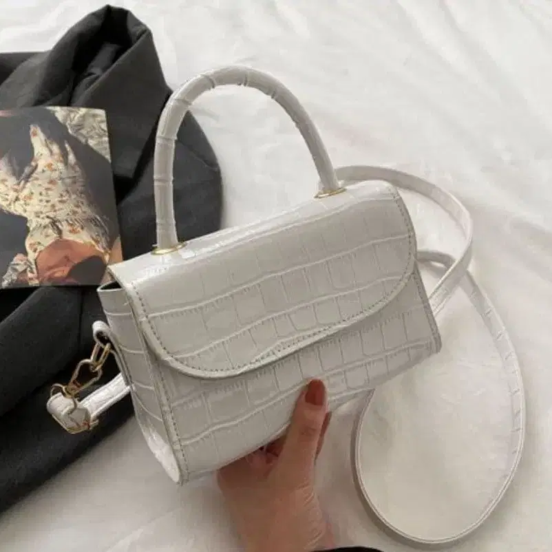화이트 크로커다일 패턴 핸드백