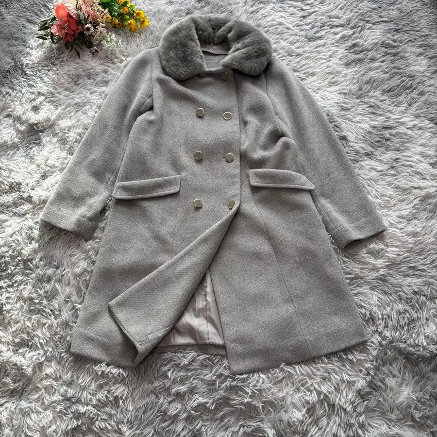 그로브 퍼 롱 코트 [ L ] 그레이 더블 브레스트 깔끔한
