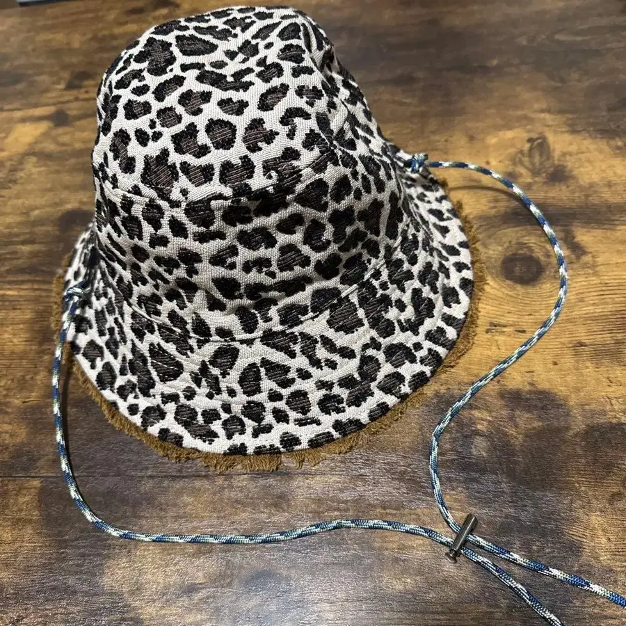 레오파드 무늬 버킷햇, 조정 가능한 스트랩 포함
