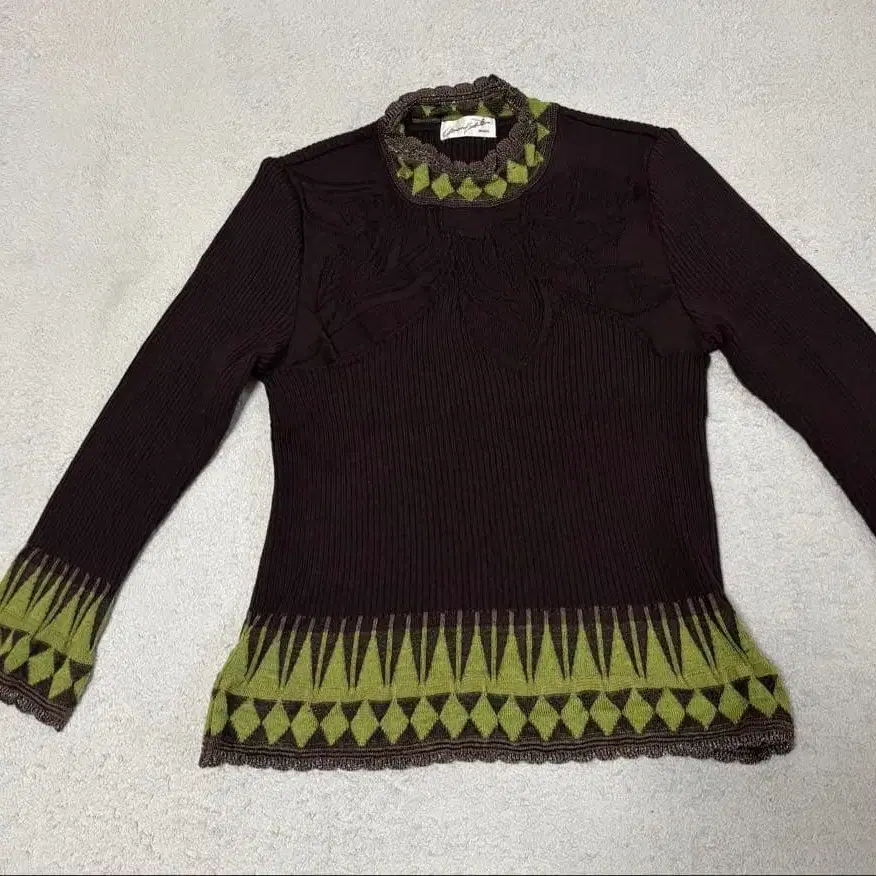 다크 브라운 그린 기하학 패턴 긴팔 니트 택 없음 새상품