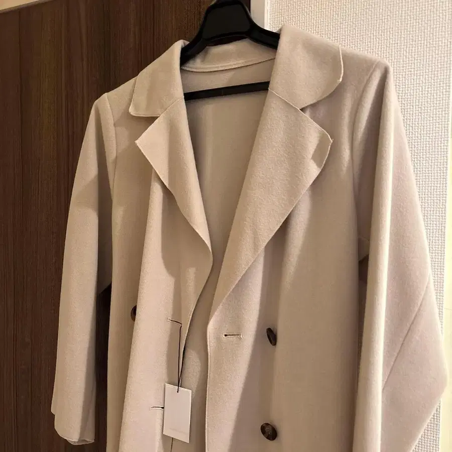 라이트 베이지 더블 브레스트 롱 코트