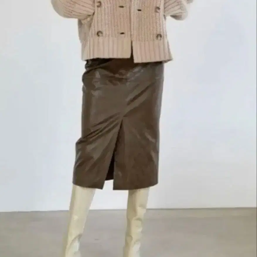한국 브랜드 ELBORN 엘르브라운 가죽 슬릿 타이트 스커트