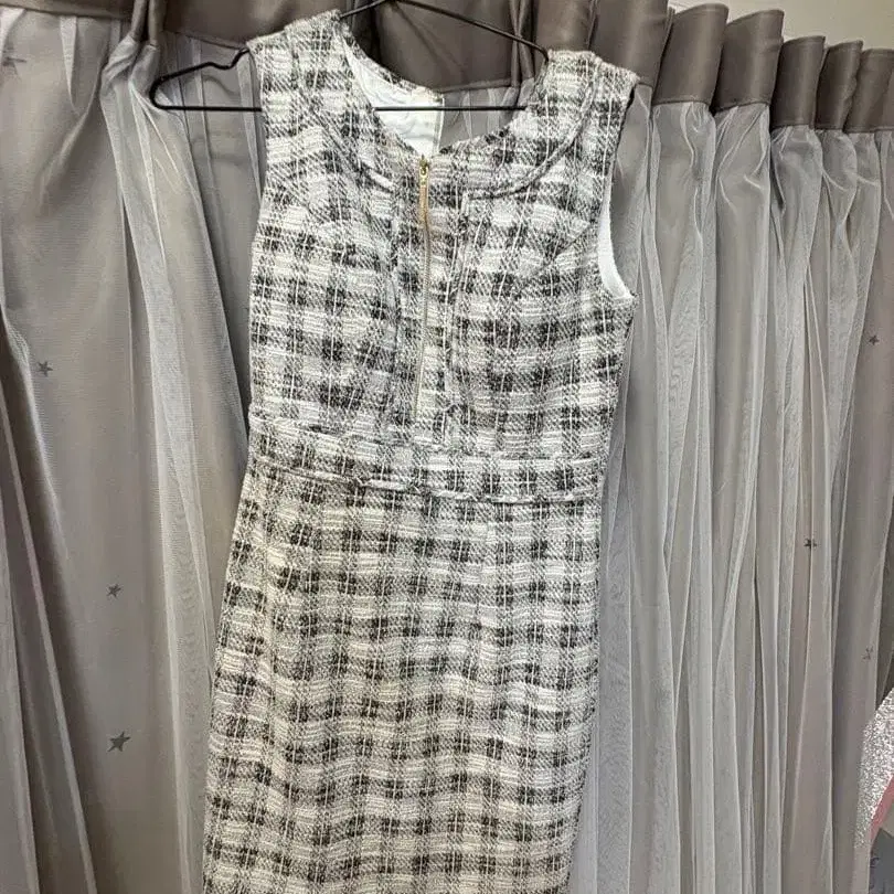 Glossy 체크 무늬 슬리브리스 원피스 M