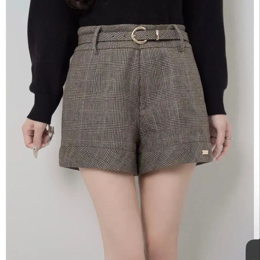 lumignon Brown check belted shorts