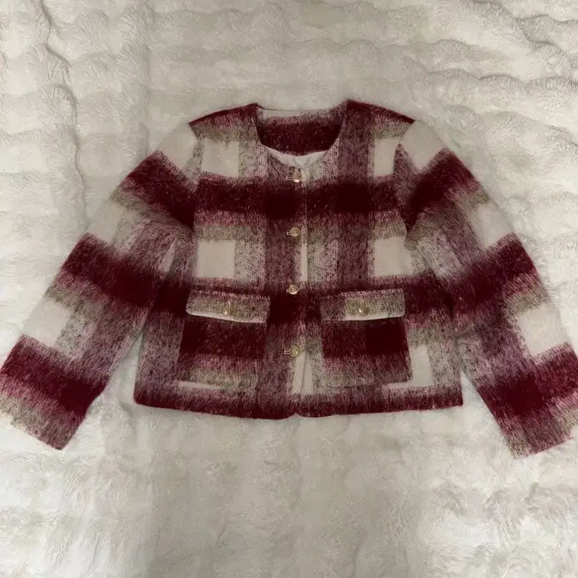 GRL 노카라 자켓 레드 화이트 체크 패턴