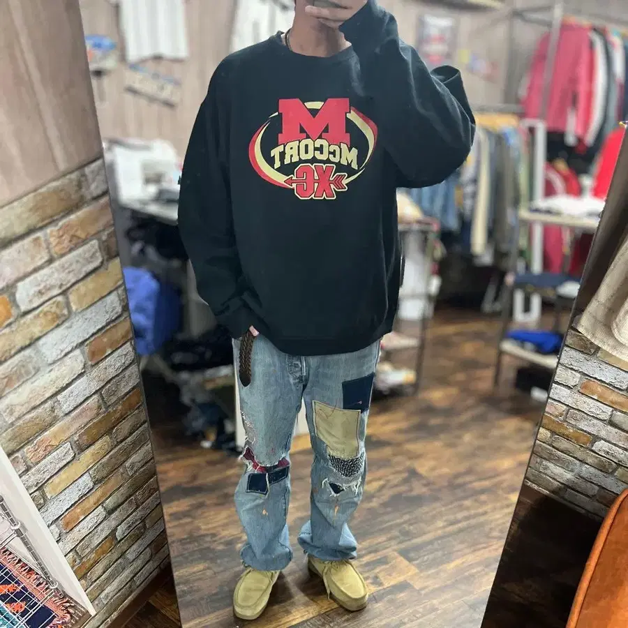 McCORT 로고 블랙 구제 의류 아메카지 XL 오버 사이즈