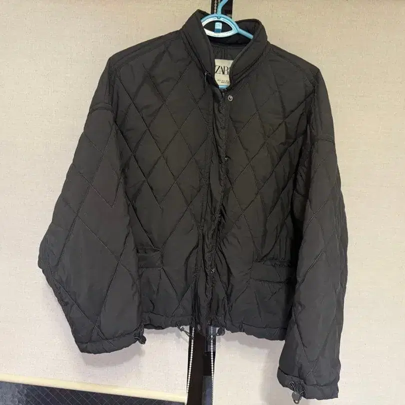 ZARA 구매 다크 그린 퀼팅 자켓 드로 코드